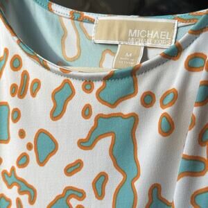 Michael Kors Teal & White Abstract Print 3/4 Sleeve Shift Tunic Resort Size M