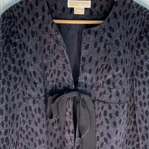 Michael Kors Textured Fur Ribbon Tie Front 3/4 Sleeve Bell Blazer Coat sz PL