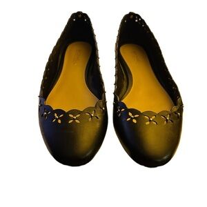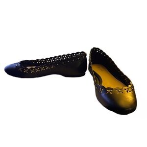 Michael Kors Thalia Black Leather Gold Stud Floral Ballet Flats, NWOT, Size 6