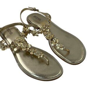 Michael Kors Thong Sandals Women's size 9.5 Tricia Gold Patent Leather Flats Shoes