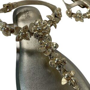 Michael Kors Thong Sandals Womens 9.5 Tricia Gold Patent Leather Flats Shoes