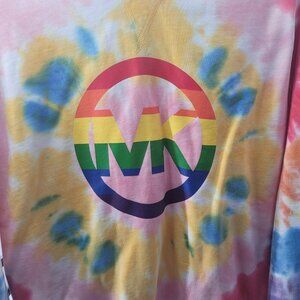 Michael Kors Tie Dye Hoodie Rainbow Pride Sweatshirt Small Oversized Logo Cozy