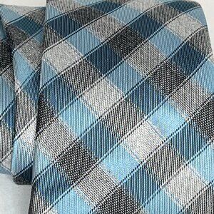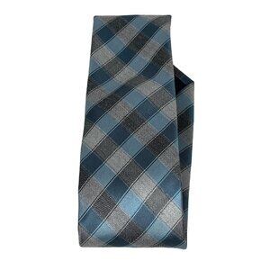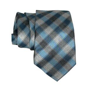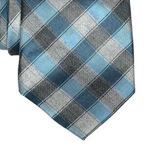 Michael Kors Tie Mens Silk Blend Necktie Blue Gray Plaid Checkered Work Business