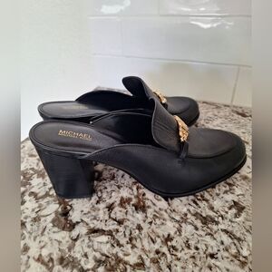 Michael Kors Tiffanie Black Leather Heel Mules Size 9.5