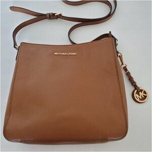 Michael Kors Timeless Saffiano Tan Leather Crossbody Messenger Bag Zip Closure