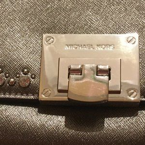 Michael Kors Tina Leather Clutch Shoulder Bag Metallic Silver - NWT $278