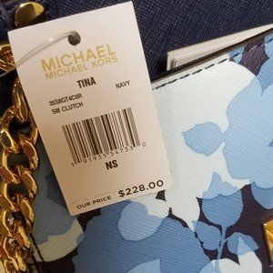 Michael Kors Tina Small Clutch Blue Floral Crossbody