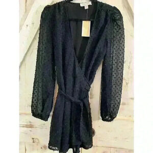 Michael Kors Tonal Embellished Dot Wrap Dress Black Size S Petite NWT 175$