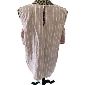 This Michael Kors blouse is a great addition to your summer wardrobe. With a nautical theme and red stripes, it's perfect for a casual occasion. The blouse is made of 100% cotton and features a crew neckline with cold shoulder sleeves and a button closure. It comes in size 2XL and has a regular fit. The white color and strap accents add a touch of elegance to the blouse, making it suitable for various events.