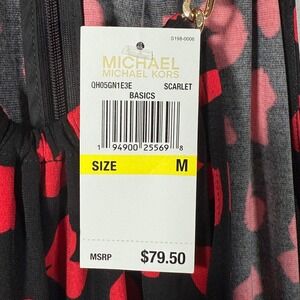 Keywords: Michael Kors, halter top, sleeveless top, black top, red heart print, gold chain, size medium, M, blouse, tank top, designer top, contemporary fashion, basics, scarlet