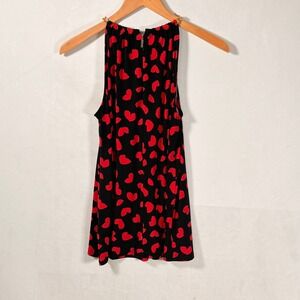 Michael Kors Top M Black & Red Heart Print Halter Gold Chain Accent Sleeveless