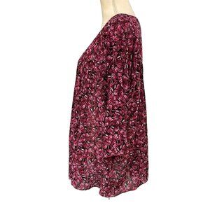 Michael Kors Top Women 1X Dark Purple Floral Chiffon Pleated Semi Sheer Blouse