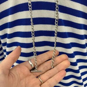 Michael Kors Top Women M Medium White Blue Striped Chain Lattice Collared V Neck