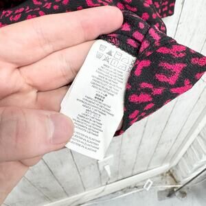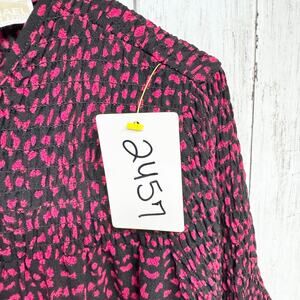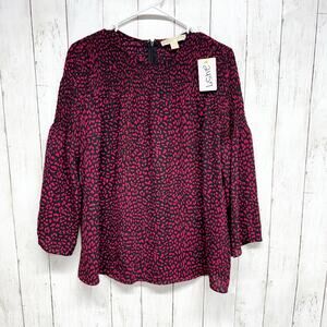 Michael Kors Top Women Sz Small Leopard Purple Print Long Sleeve Smocked Blouse
