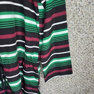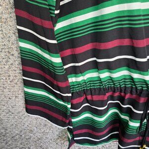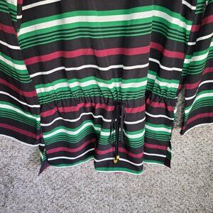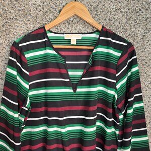 Michael Kors Top Womens Large Black Green Striped V Neck Blouse Semi Sheer