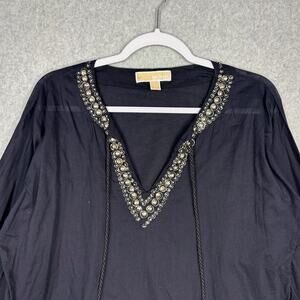Michael Kors Top Womens Large Navy Embellished Popover Thin Boho Blouse READ
