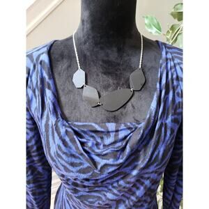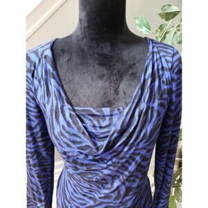 Michael Kors Top Women’s S Blue Black Zebra Print Cowl Neck Stretchy Blouse