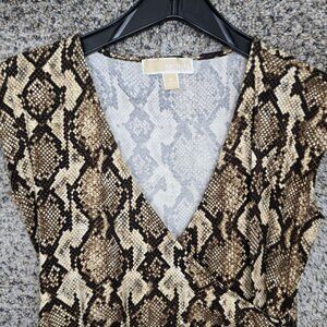 Michael Kors Top Womens Small Brown Animal Print Surplice Neck Short Sleeve Tee