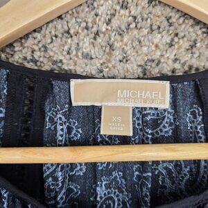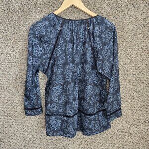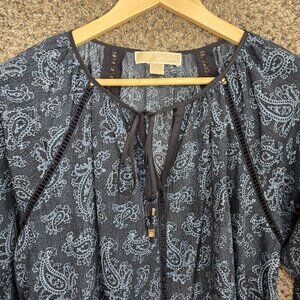 Michael Kors Top Womens XS Blue Paisley Print Oversized Peasant Blouse Neck Tie