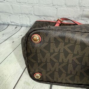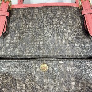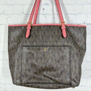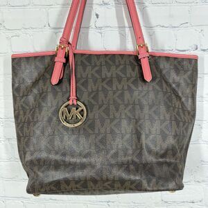 Michael Kors Tore Shoulder Bag Women Monogram MK logo Brown Pink Medium Jet Set