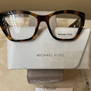 Stylish tortoise shell glasses by Michael Kors clear lenses Comes with a white case, care instructions dust cloth and box