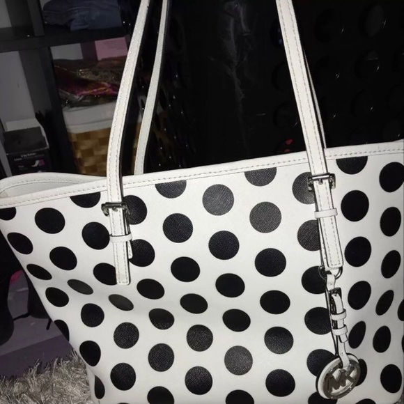 Black and white polka dot tote. Little wear. I bought with intentions of using but I don’t. Comes with dustbag.