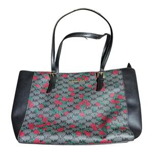 Michael Kors Tote Bag Black Rose Floral MK Monogram Satchel Handbag Purse