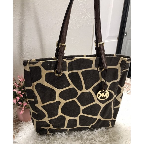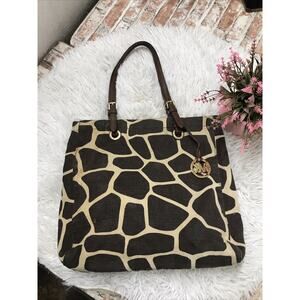 Michael Kors Tote Bag Brown Giraffe Print Canvas Shopper Shoulder Bag Pre-owned