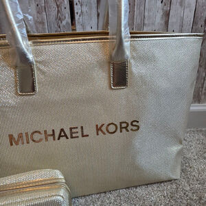 Michael Kors Tote Bag Gold with Matching Cosmetic Bag