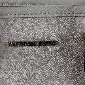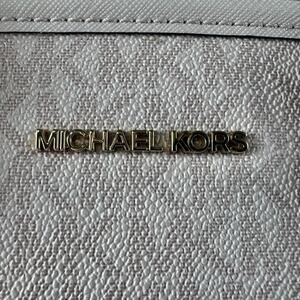 Gold tone Michael Kors nameplate on front and gold MK logo charm accent