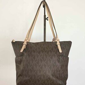Michael Kors Tote MK Signature Brown Travel Shoulder Bag with Matching Wallet