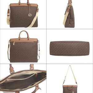 2022 Spring/Summer Model; 2022SS; Michael Kors Michael Kors tote bag. A fashionable tote bag with a combination of brown signature all-over PVC and leather with logo hardware. The zipper closure allows you to store A4 size, and the various pockets on the inside and back provide excellent storage capacity. The included shoulder strap can be worn diagonally in 2 ways. Great for commuting to work or school or everyday use.