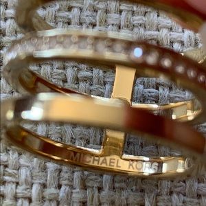Worn, in great condition. Small spot on one end of the bar, see closeup for that, branding and size stamp. Middle ring is crystal encrusted.