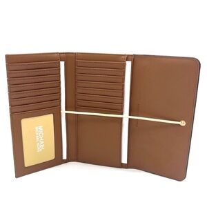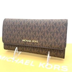 MK signature logo PVC coated canvas body and Saffiano leather inside.