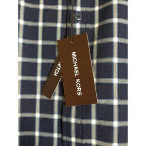 Michael Kors Trim Stretch Button-Up Shirt Checked Long Sleeves Collared XL