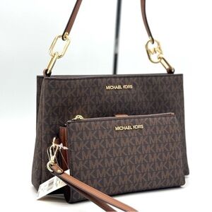 Michael Kors Trisha MD Triple Compartment Bag & Double Zip Wallet Set Brown