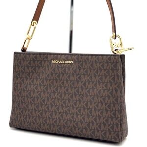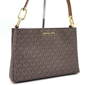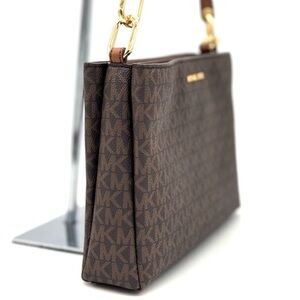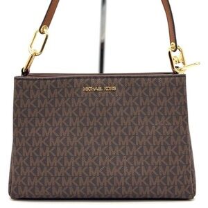 Michael Kors Trisha Medium Triple Compartment Crossbody Bag Brown Signature