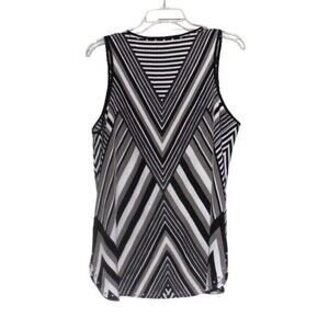Michael Kors Tunic Top Black White Sleeveless Beaded V Neck High Low Size 12
