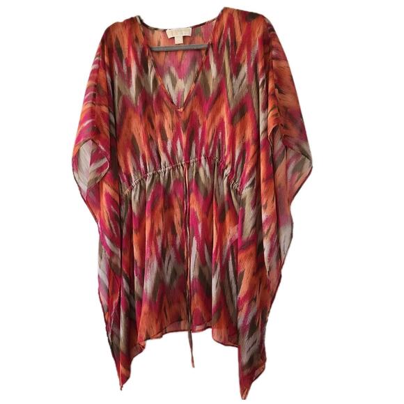 Michael Kors Tunic Top Coverup Size L/XL Colorful Red Pink Orange Tan Coastal