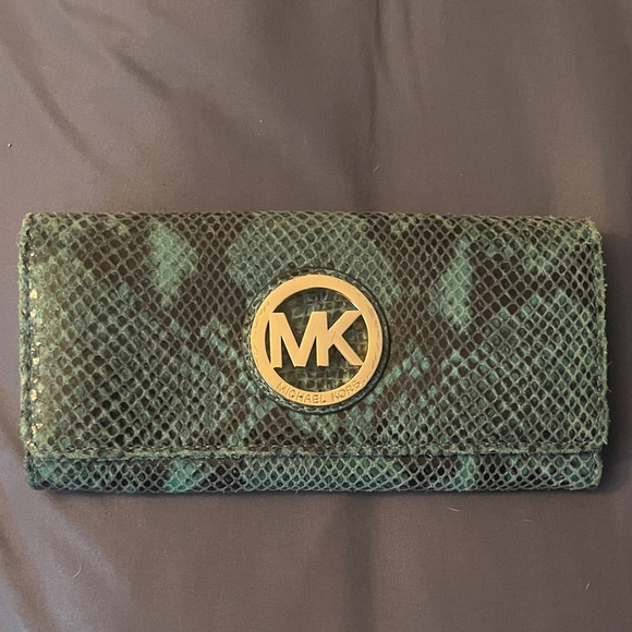 Michael Kors Turquoise Fulton Python Embossed Wallet