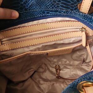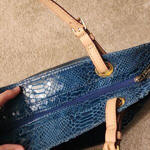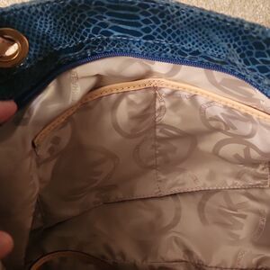 Michael Kors Turquoise Snakeskin-Print Embossed Leather Tote Bag