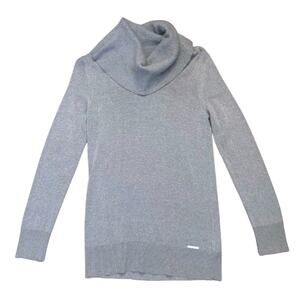 Michael Kors Turtleneck Cowl Long Sleeve Metallic Silver Gray Sweater Small
