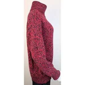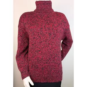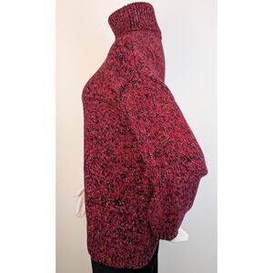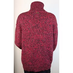 Michael Kors Turtleneck Sweater Small Marled Red Black Silver Metallic Holiday