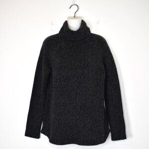 Pre-owned, good condition. No visible holes or stains. Normal signs of wear. Marled knit in shades of charcoal gray and silver. Turtleneck. Tunic length. Pullover. Ribbed neck and cuffs. Raglan sleeves. Rounded hemline. Size per tag: M (Medium). Knit blend: 58% Cotton/ 19% Acrylic/ 12% Polyester/ 6% Wool/ 1% Elastane/ 4% Other Fibers. Size per tag does not guarantee desired fit, please see pictures for measurements.