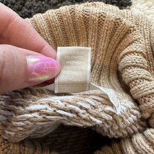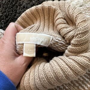 Michael Kors Twill Stitch Turtleneck Poncho Sweater Camel Size XL Tan White