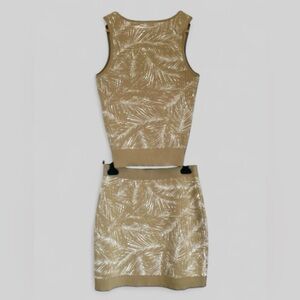Michael Kors Two Piece Knit Set Tank Top and Skirt In Khaki & White