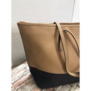 Michael Kors Two Tone Jet Set Travel Tan/Black Tote Shoulder Handbag Purse Bag