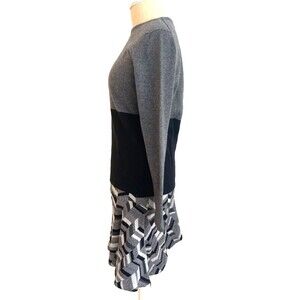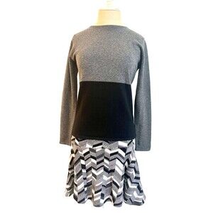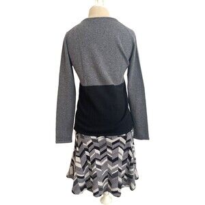 Michael Kors Two Tone Sweater Paired with Moth Geometric Skirt Black Grey White