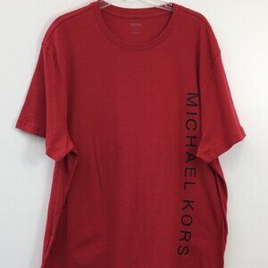 Michael Kors red short sleeve crew neck with graphic logo at side, 100% cotton, straight hem, casual (left pictured)