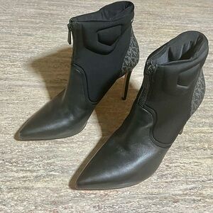 Michael Kors Uma Leather and Scuba Leather Black Stiletto Ankle Boots